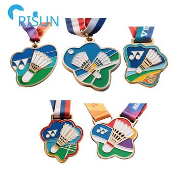 יצרני עיצוב מתכת ספורט בדמינטון מדליית מותאם אישית הדפסת זהב כסף ברונזה בדמינטון מדליות אין מינימום עם סרטים